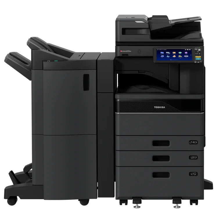 The Toshiba e-Studio 6525 AC can print up to 65 pages per minute with a 1,200-input paper capacity and 6GB RAM which will save your business time. Featuring a 10.1-inch tablet-style touch colour panel for easier operation and a 1,200 x 1,200 dpi print resolution for high-quality prints. This printer also comes with Remote Assist and e-Cloud Connect to allow for service and assistance when you need it.